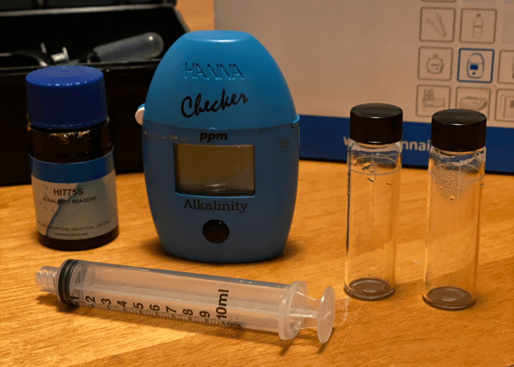 Those are definitely the nicest options if you are able to find them and are willing to spend a couple hundred dollars for your measurements. You only have to add some reactant to a sample of your water, place it in a small colorimeter or photometer device, and you will get the composition of your water as a number on a screen. It is almost as easy as using a refractometer to measure coffee concentration. With typical water recipes, they can reach precisions of about 5-6 ppm as CaCO3 in both GH and KH. This is a very good precision, and should be better than what we can actually taste in the resulting coffee. It’s also very hard to make a human mistake during the measurements, which is not the case with the other tools described below. There are some down sides however; they are usually hard to find and you will need to order reactant chemicals every once in a while. Those that I could find are manufactured by Hanna Instruments. The most relevant ones are: